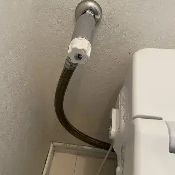 ウォシュレットの給水ホース接続部から水漏れしている場合、ホース劣化や接続部パッキンの不具合が原因の可能性があります。 必要に応じてホース交換を行います。