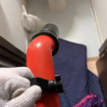 市販のパイプクリーナーで改善しない場合、専用機材を使用してつまりを解消します。