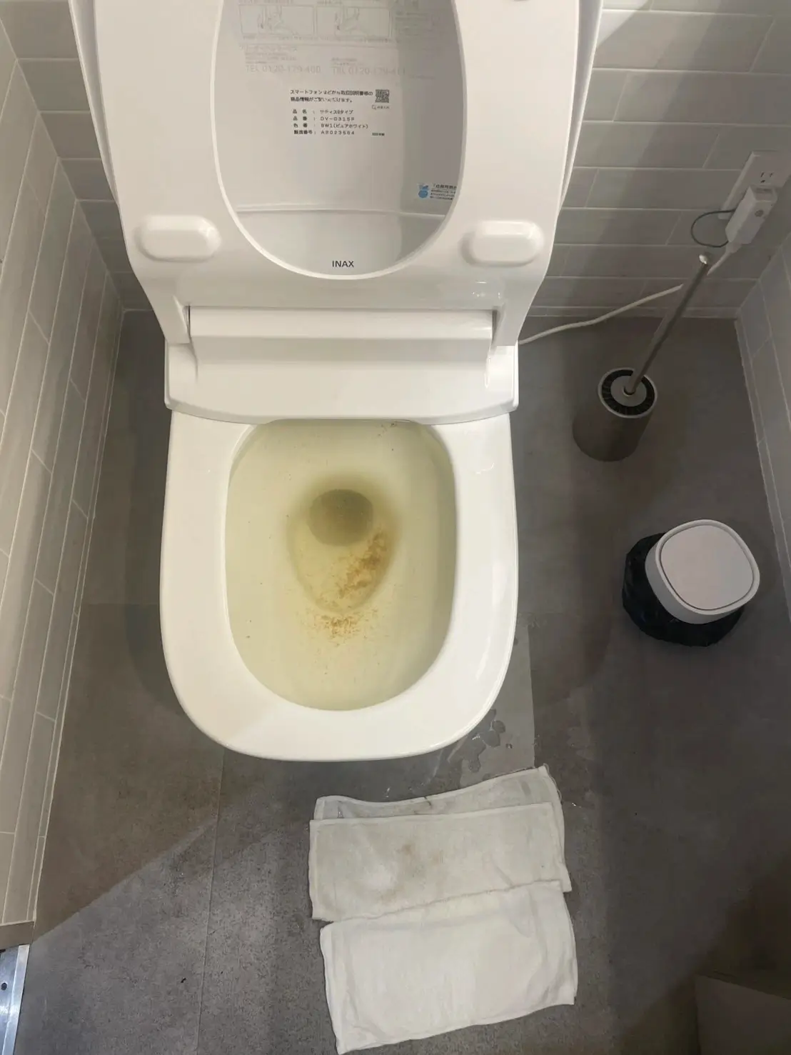 現場確認を行ったところ、便器内に汚水が滞留し、通常のローポンプ作業のみでは逆流のリスクが高かったため、溢れ防止として汚水の汲み取り作業から実施いたしました。