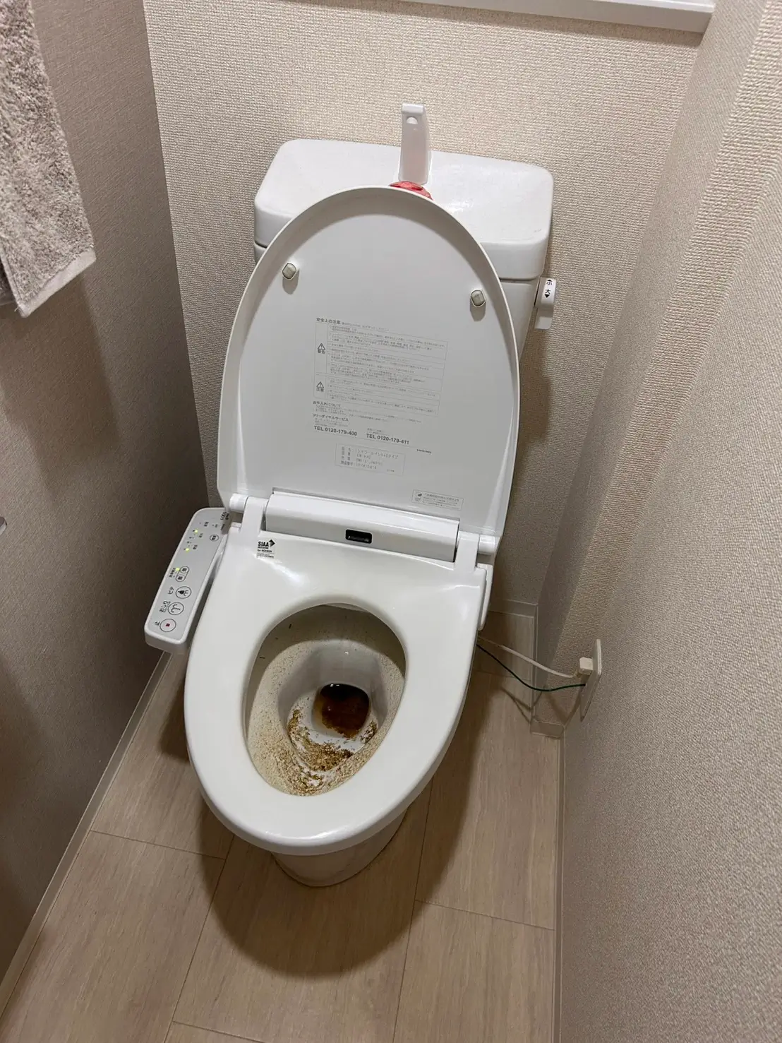 トイレの水位が上昇する症状は、排水ラインに強めの詰まりが発生している可能性が高く、放置すると逆流にもつながるため、迅速な対応が必要な状況でした。