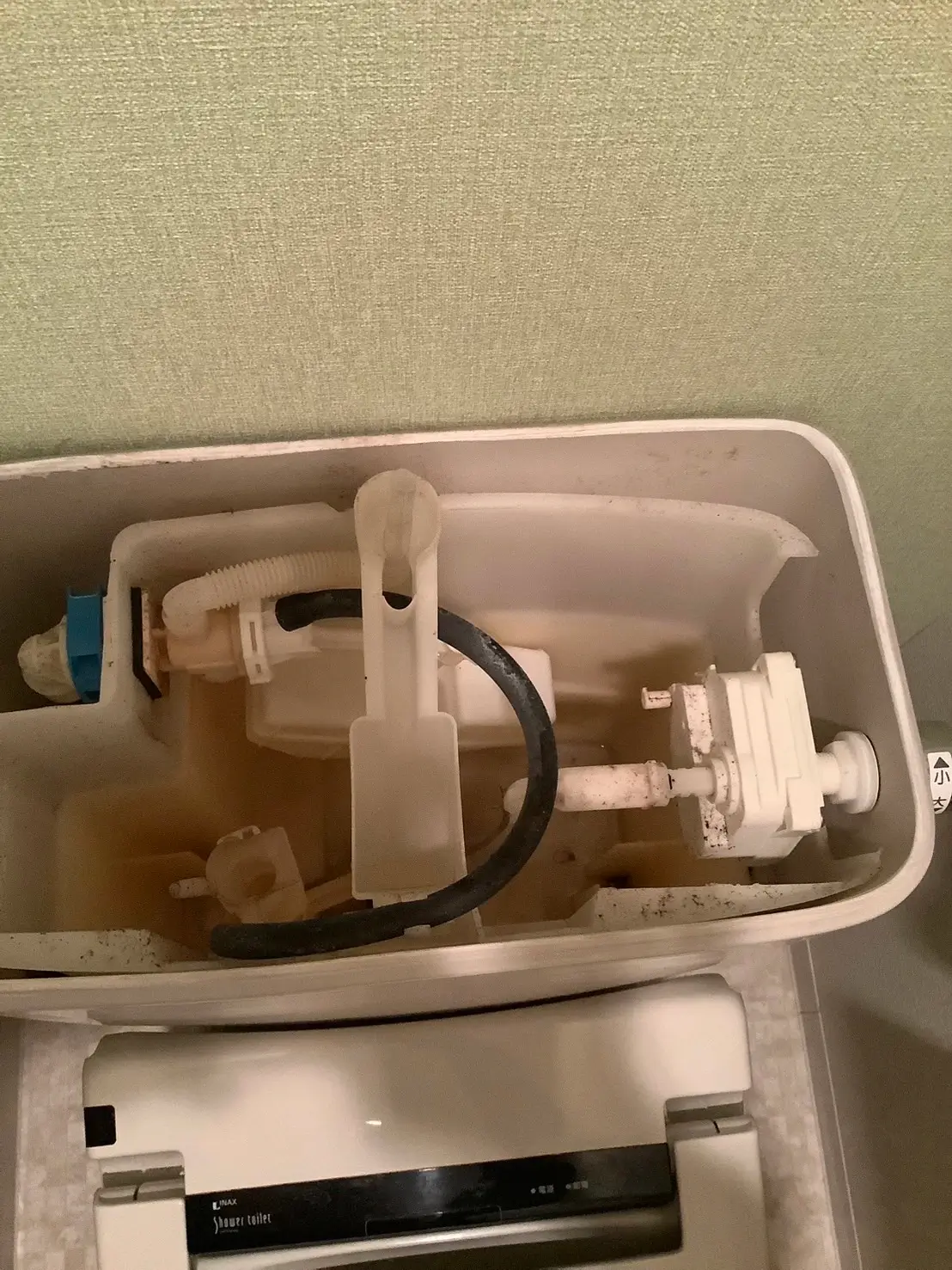お伺いした際、タンク内部の部品が劣化しており、適切に作動せず水が漏れてしまう状態となっていました。