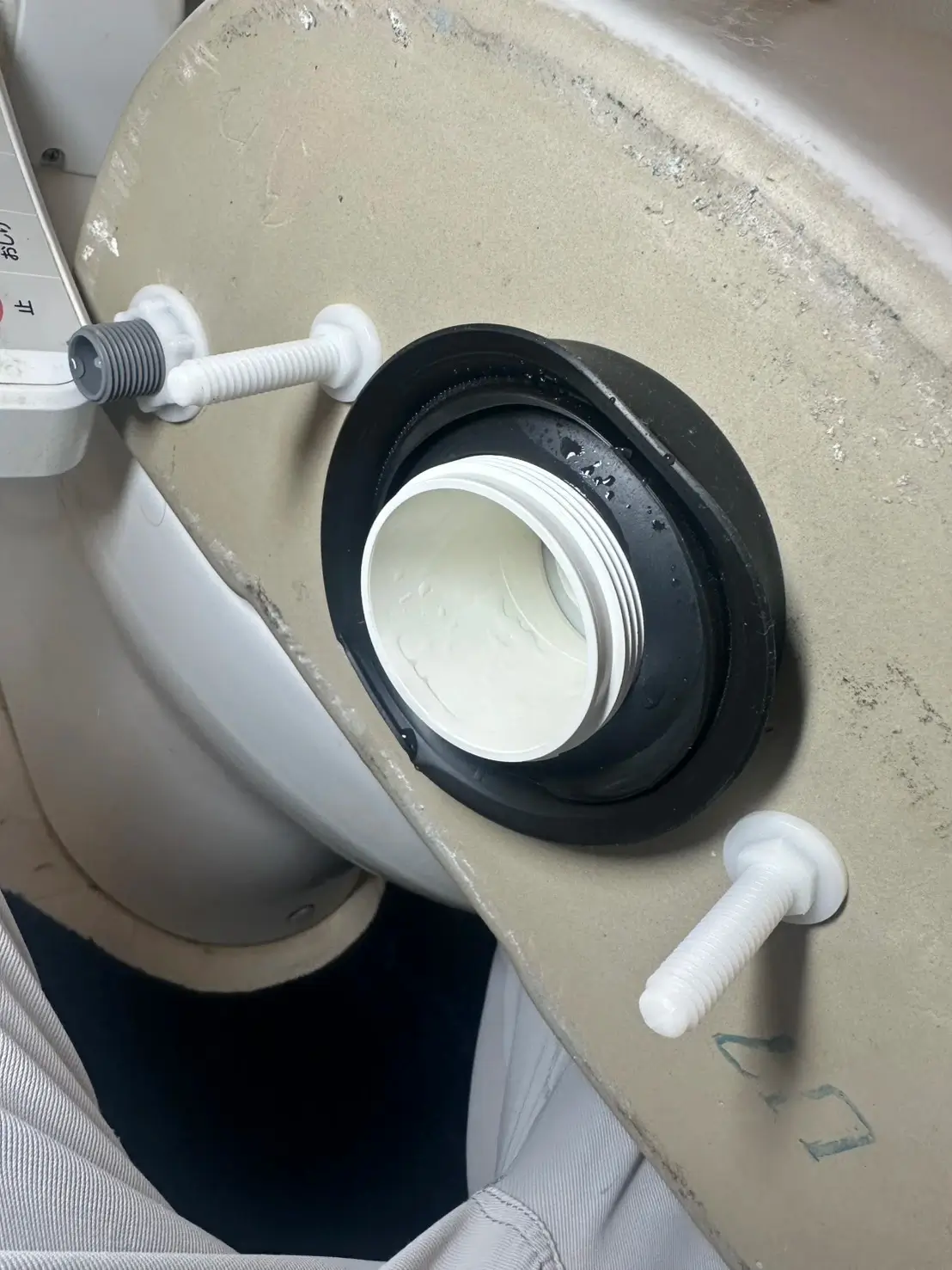 今回の症状は、レバー操作時に内部機構が連動しない状態で、鎖切れとサイフォン管、密結パッキンの経年劣化が原因でした。