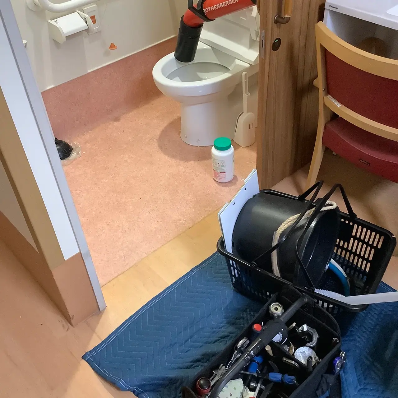 老人ホーム内のトイレで急に水が流れなくなり、とても焦りました。