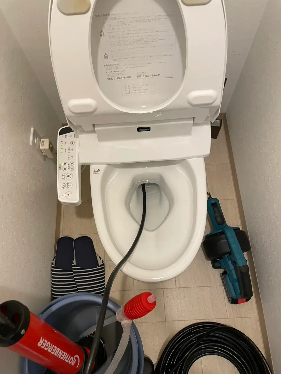 時間もなく、自分でラバーカップを試してみましたがまったく改善されず、急いでトイレ専門チームさんに電話しました。