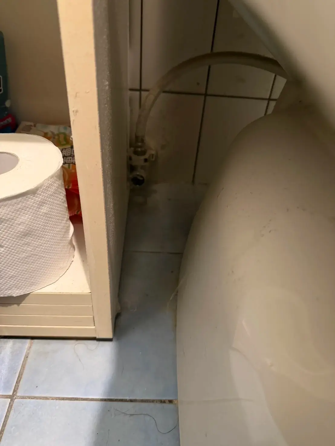 点検の結果、トイレの給水接続部のパッキンが劣化しており、微量な水漏れが発生していました。