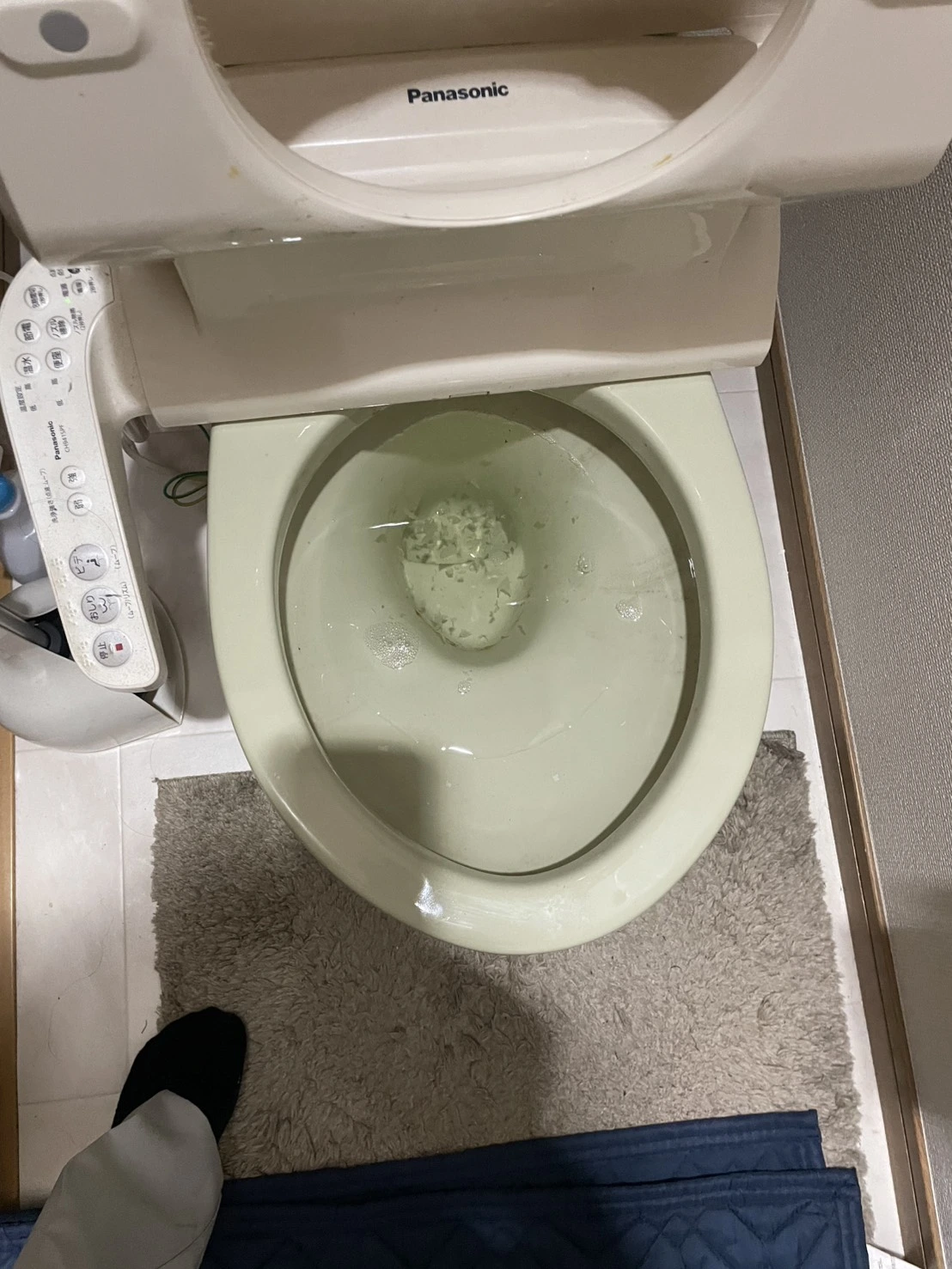 夜間に突然トイレがつまってしまい、水位が下がらないとのことで、早急な対応が必要な状況でした。