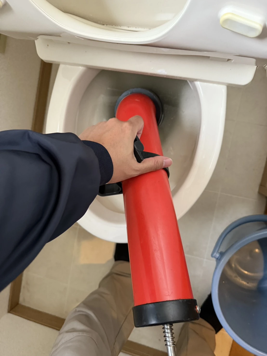 トイレつまりの対応では、ポンプ作業により詰まりを丁寧に取り除き、すぐにご使用いただける状態に回復しました。