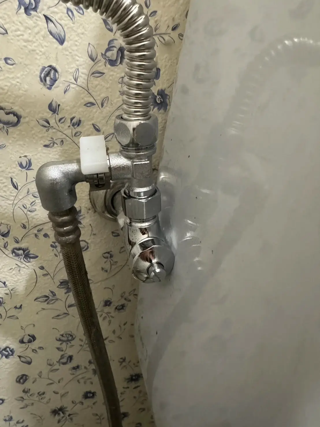経年劣化により止水不良を起こしていたため、トイレタンクを脱着し止水栓とフレキホースを交換しております。