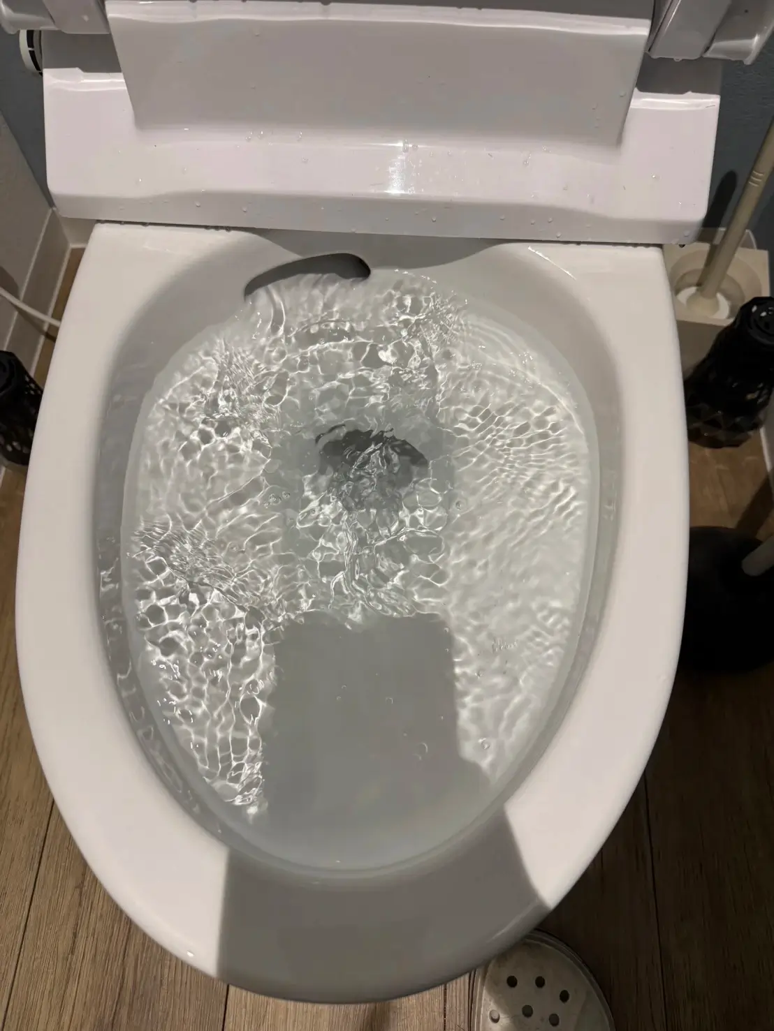 トイレを流した瞬間に水位が上がり、さらに床まで水がにじんできてとても驚きました。