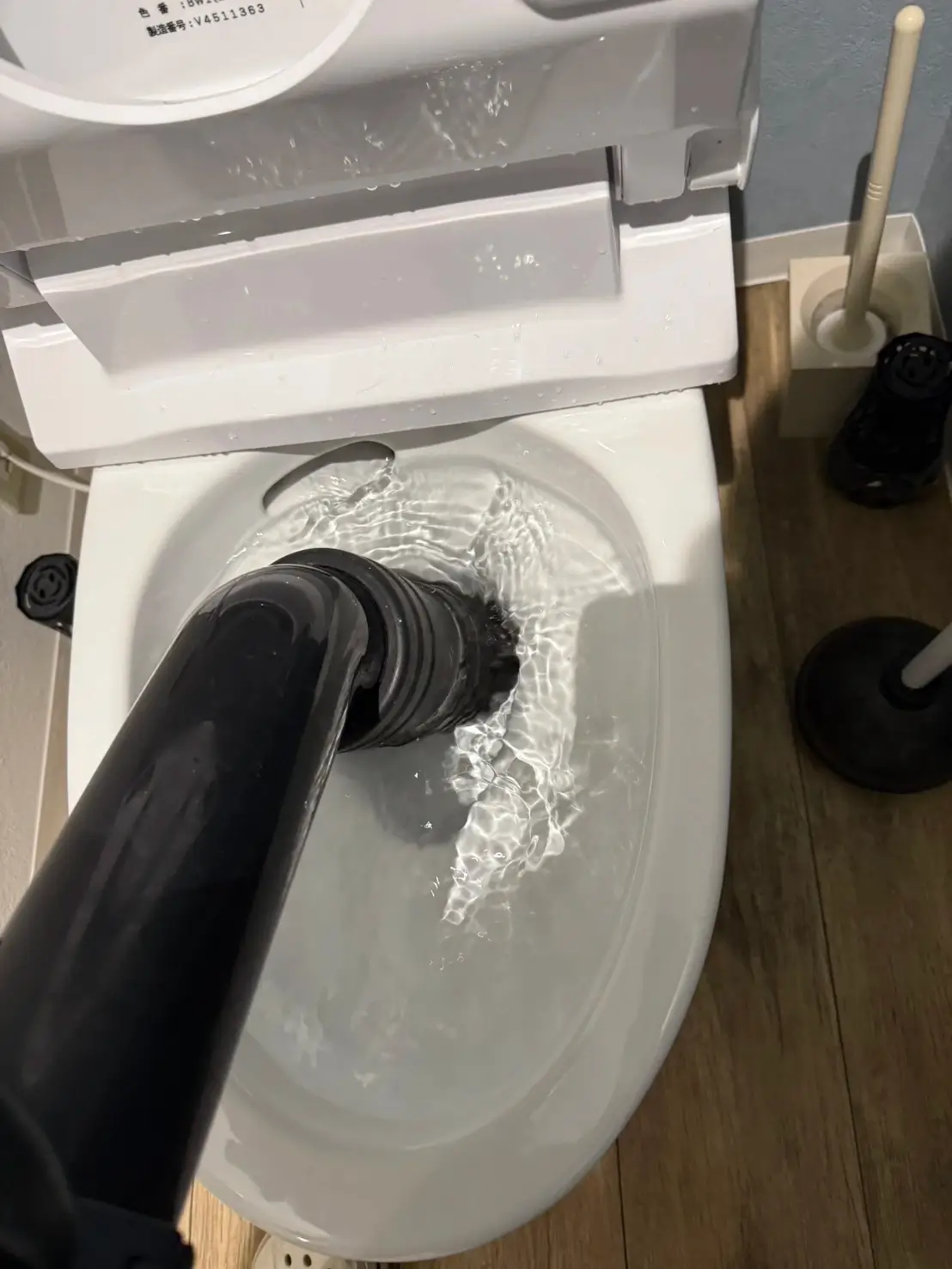トイレを流した瞬間に水位が上がり、さらに床まで水がにじんできてとても驚きました。