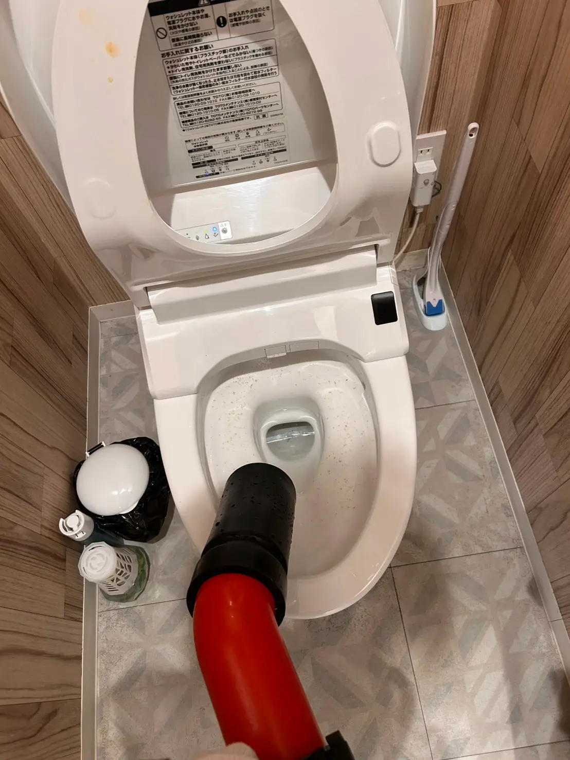 夜中にトイレが詰まり、何度ラバーカップを試しても改善せず困り果てていました。