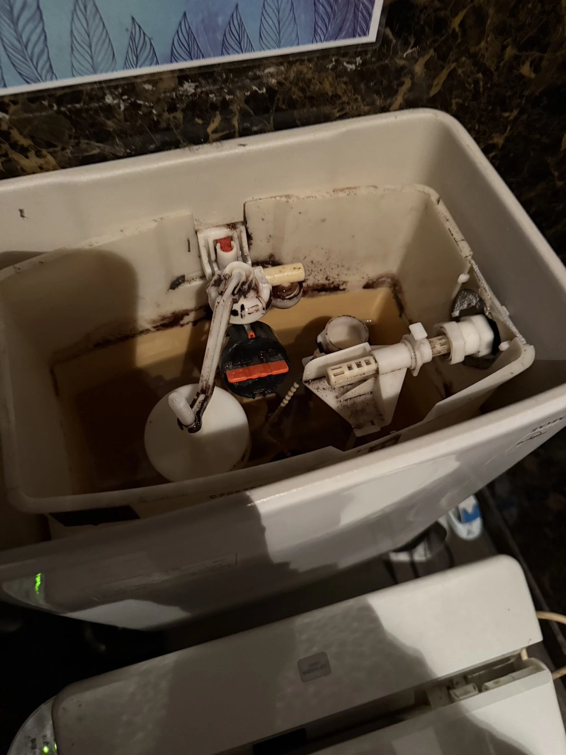 既存部品を慎重に取り外し、新しいボールタップおよび排水弁へ交換しております。