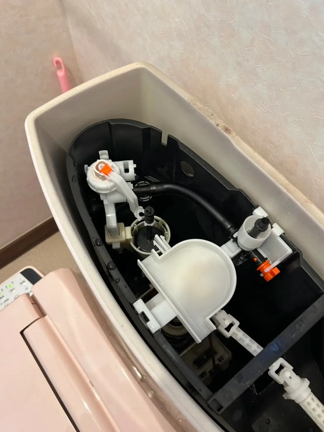 トイレタンクから流水音が続く症状は、止水機構の部品劣化が原因となることが多くあります。