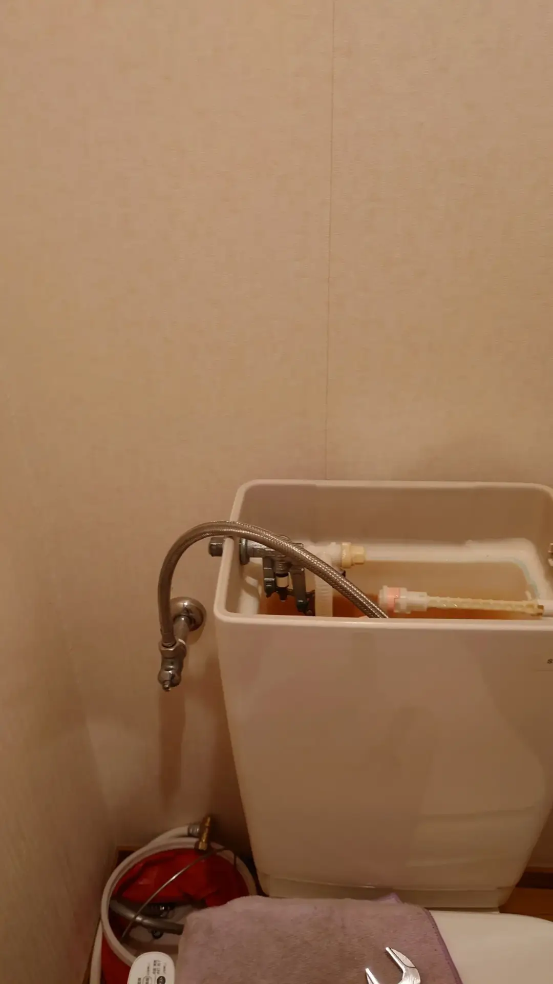 交換後に通水テストを行い、トイレの給水が正常に回復しました。