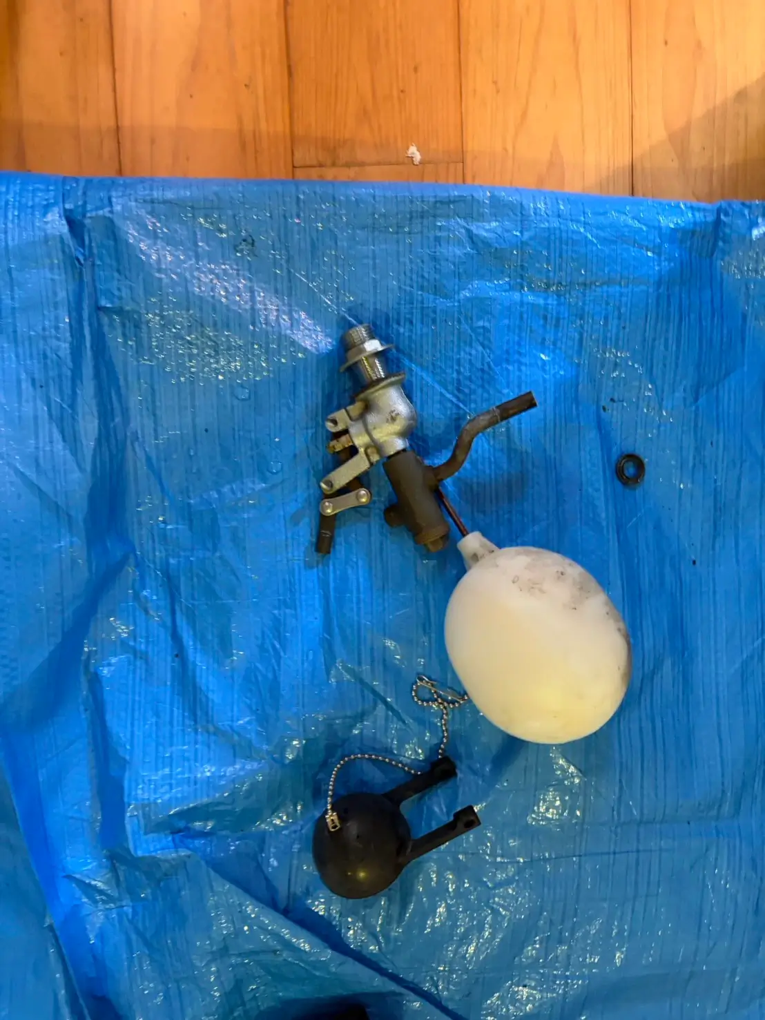 現地確認の結果、内部部品の劣化が原因で水が漏れている状態でしたので、パッキンおよびボールタップの交換を行い、再発防止も含めた対応をさせていただきました。