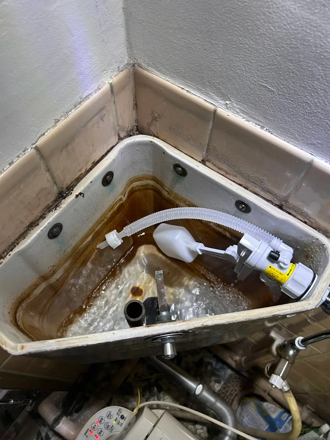 夜間のご依頼でトイレの水が止まらない状況でしたが、点検の結果タンク内部の給水部品に不具合が見られました。