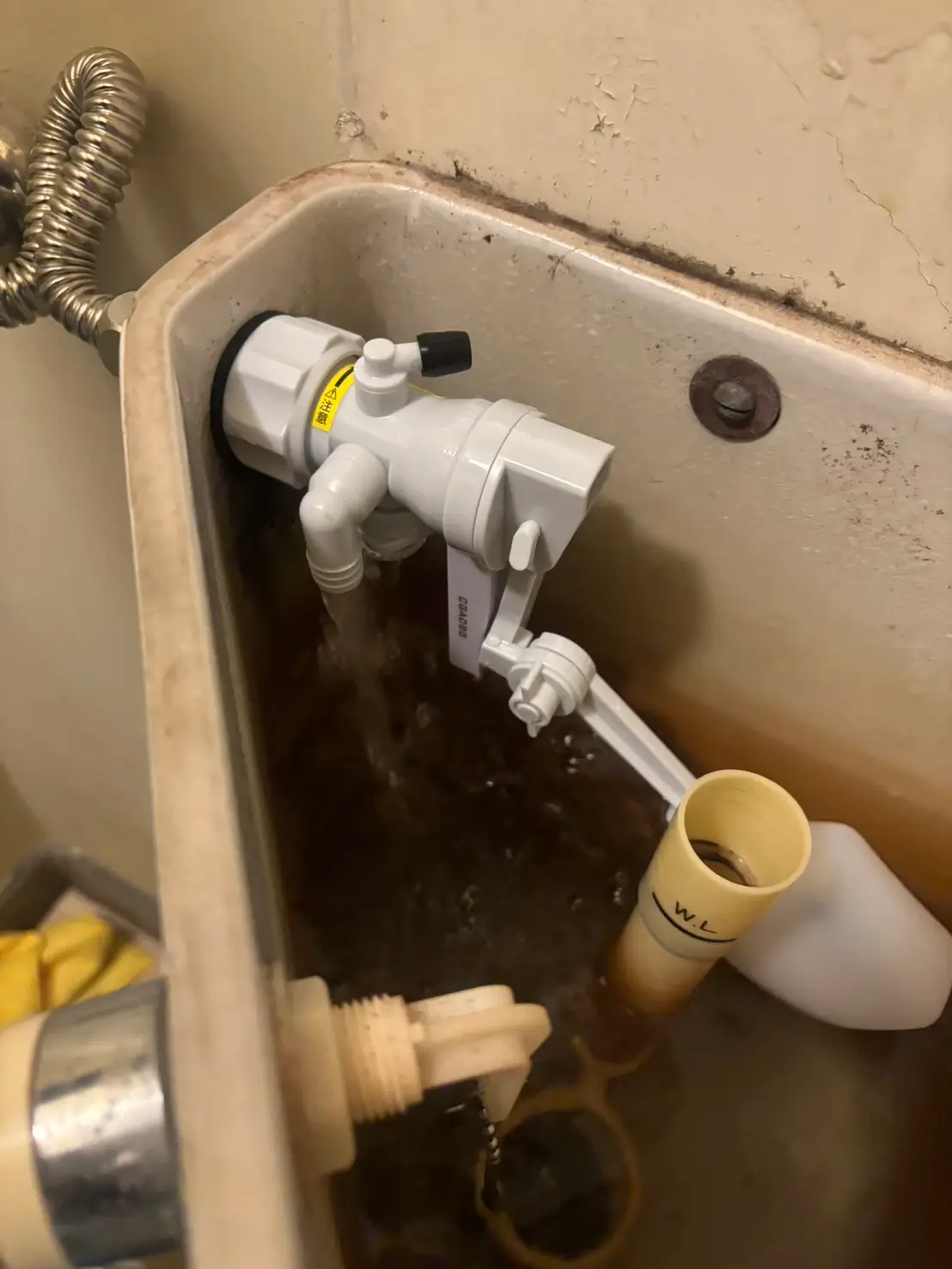 今回のケースでは、複数箇所に劣化が確認されたため、タンク部品と給水管の一部交換を行い、根本的な改善を図りました。